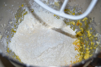 En un bol disposem la farina, la farina d'ametlla, el sucre i el llevat.