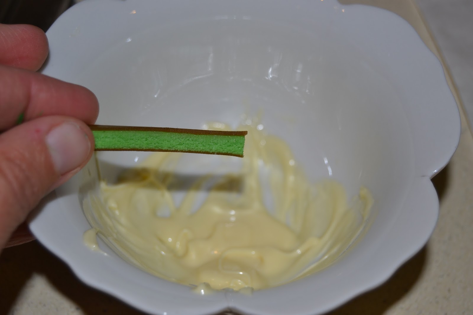 Hi afegim el colorant verd, i tornem a batre fins obtenir una massa de color homogeni.