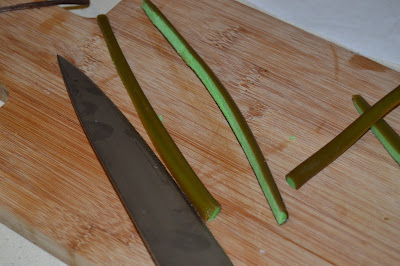 Agafem xuxes llargues i consistents, i les tallem a la mida que volguem, segons la nansa que volguem posar al cistell.