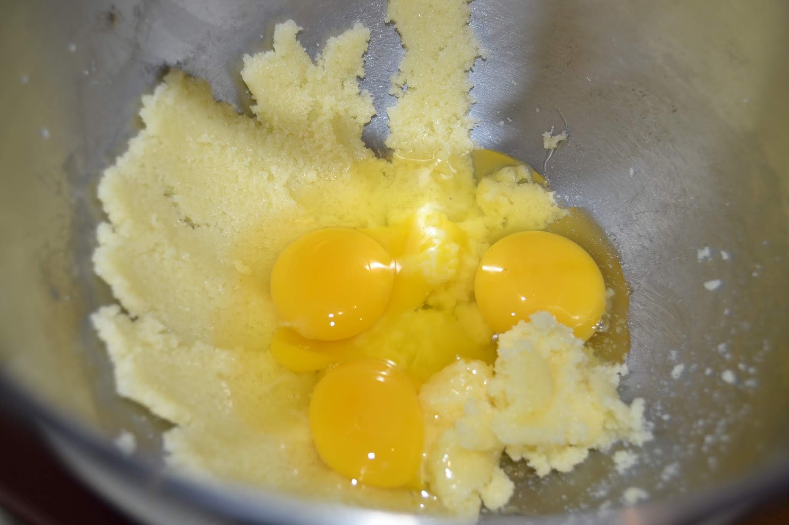 Bateu molt bé la mantega (a temperatura ambient) i el sucre.Hi afegiu els ous i els rovells i continueu batent.