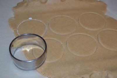 Amb l'ajuda d'un corró, estireu la massa entre dos papers de forn, i talleu les galetes amb un tallador rodó. Han de ser bastant fines.