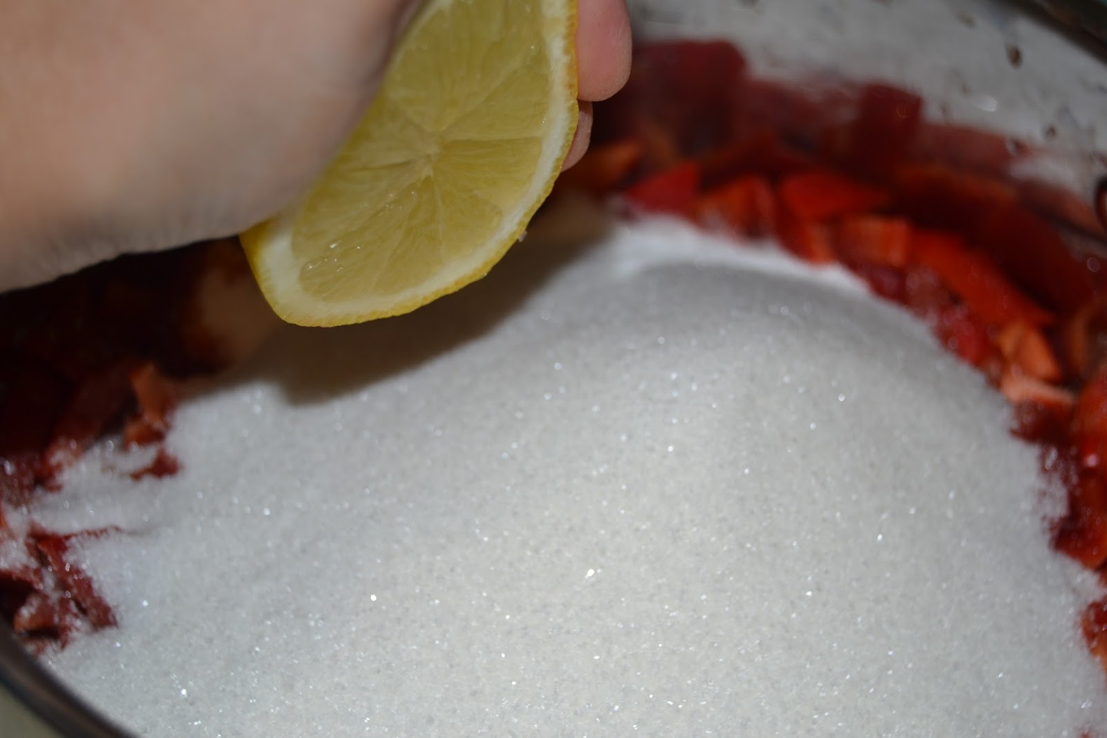 Hi afegiu el sucre i el suc de llimona, remeneu i poseu la casola a foc lent.