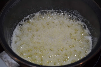 Comencem torrant la mantega per fer la base cruixent. Posem la mantega en un caçó i deixem que es fongui tot remenant. Llavors la deixem al foc fins que es dauri. Retirem i deixem refredar 5 minuts.