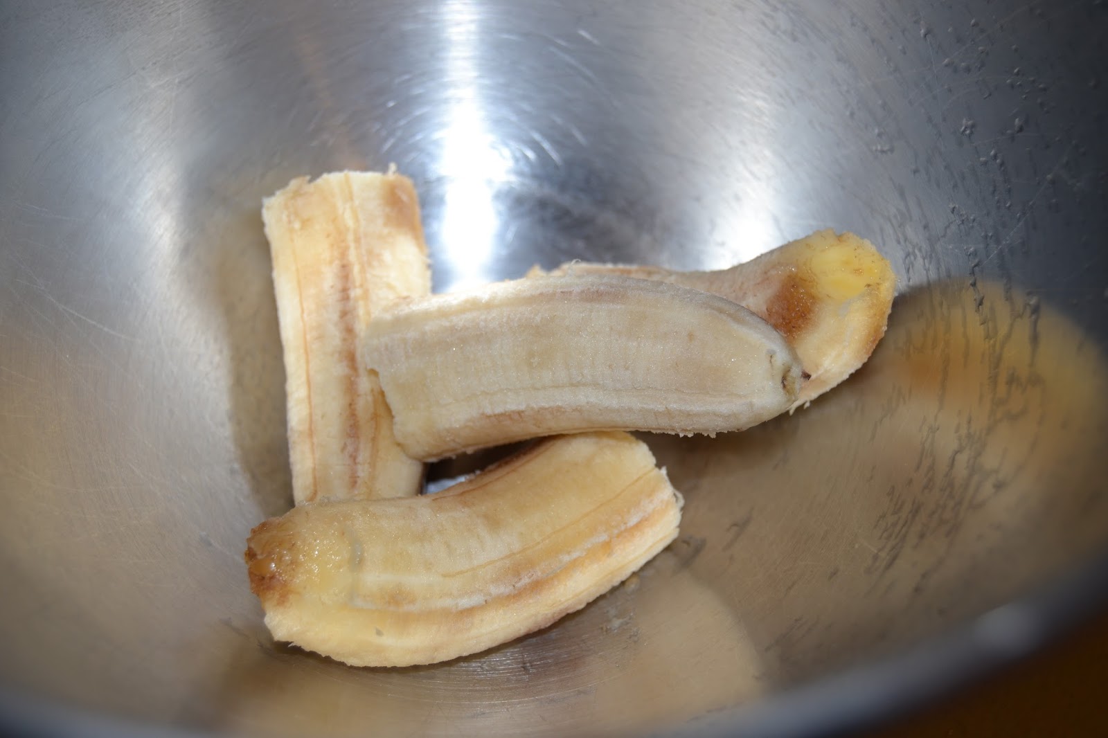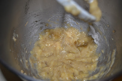 Tot seguit, comencem a preparar la massa. Trinxem els plàtans madurs.