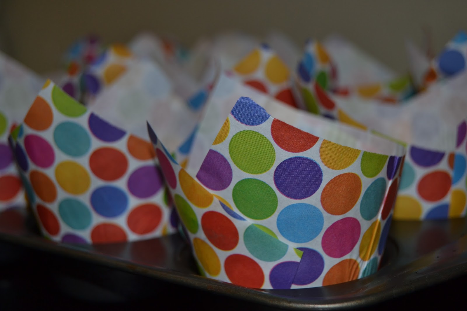 Primer de tot preparem els papers dins la safata...mireu aquest de topos de colors que vaig portar d'Alemanya...oi que són bonics...i no perden gens de color al forn!!!