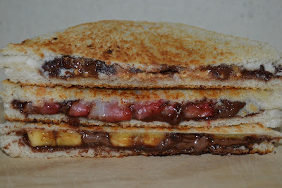 Els de plàtan i nutella es fan untant una de les llesques de l'entrepà amb nutella, i repartint pel damunt rodanxes de plàtan.