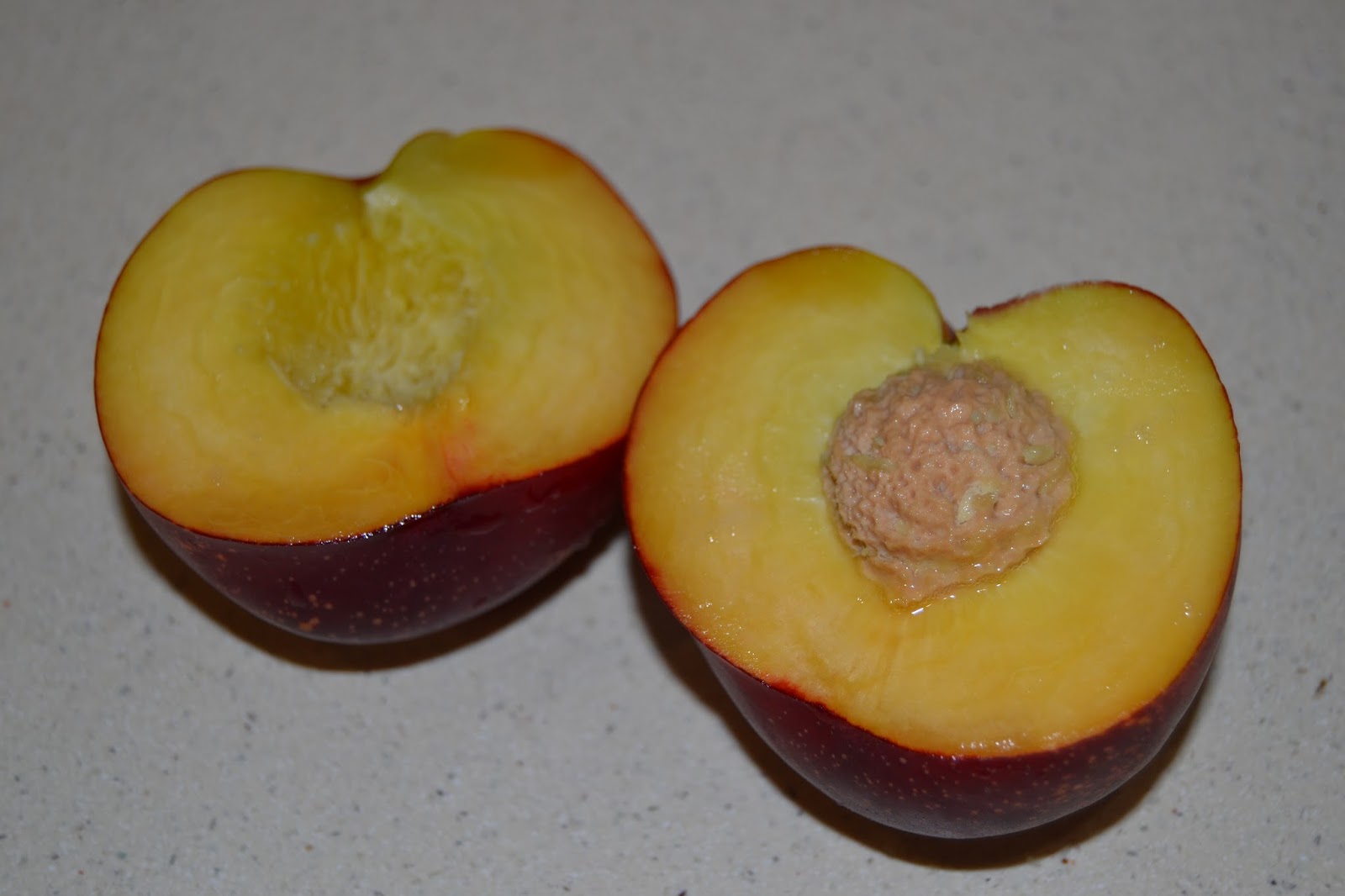 Agafem les nectarines, les rentem bé, les partim per la meitat i els hi traiem el pinyol.