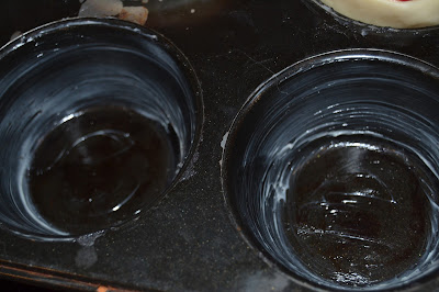 Llavors unteu amb mantega els forats de la safata dels cupcakes...i col.loqueu les roses allà.