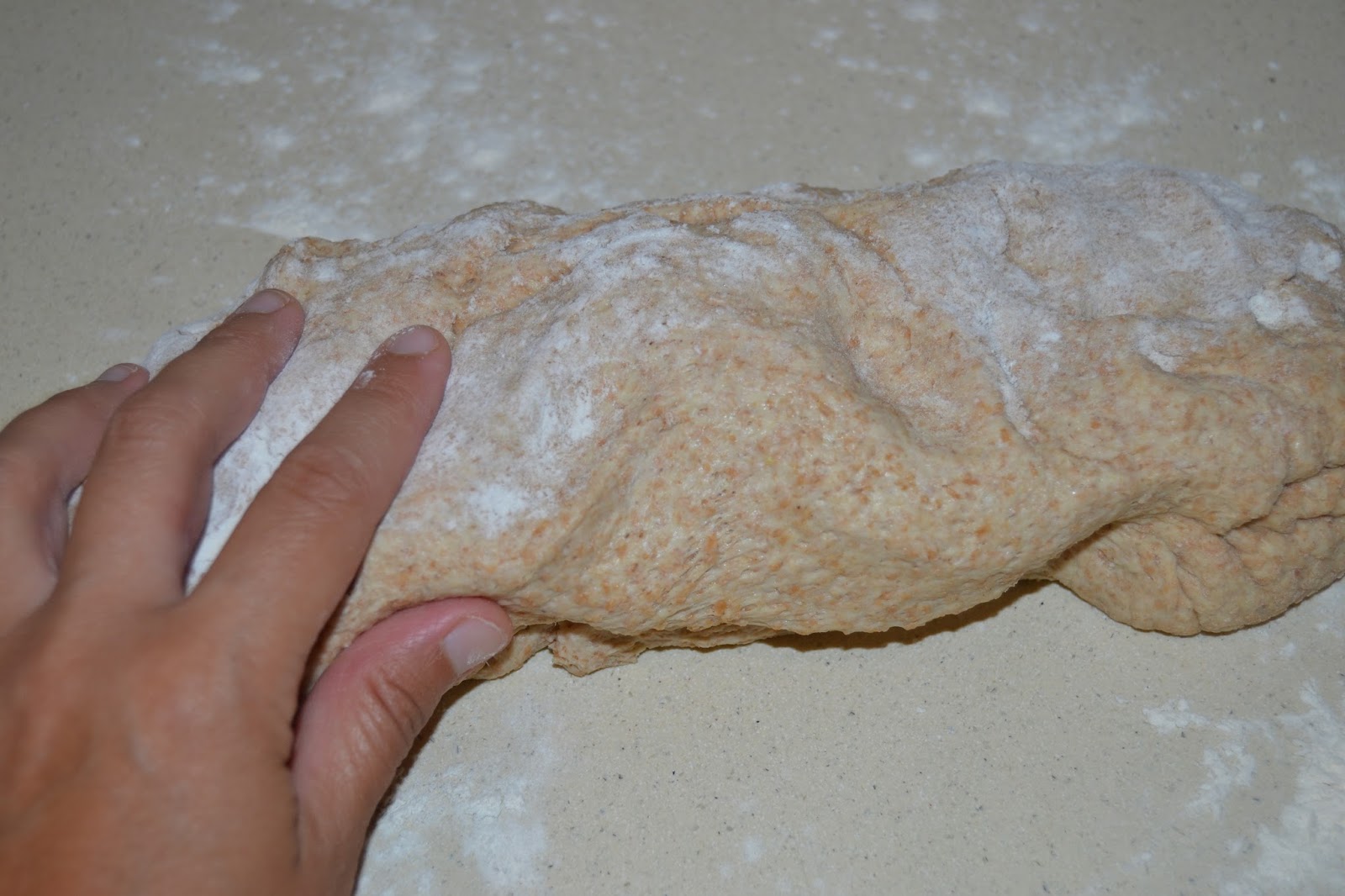 Quan ja tinguem una massa elàstica, i poc enganxosa, afegim el llevat fresc esmicolat, i amassem fins que s'integri.