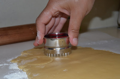 Tallem les bases dels minipies, amb un tallador rodo amb marge arrissat, i les dipositem en una safata de forn, ja folrada.