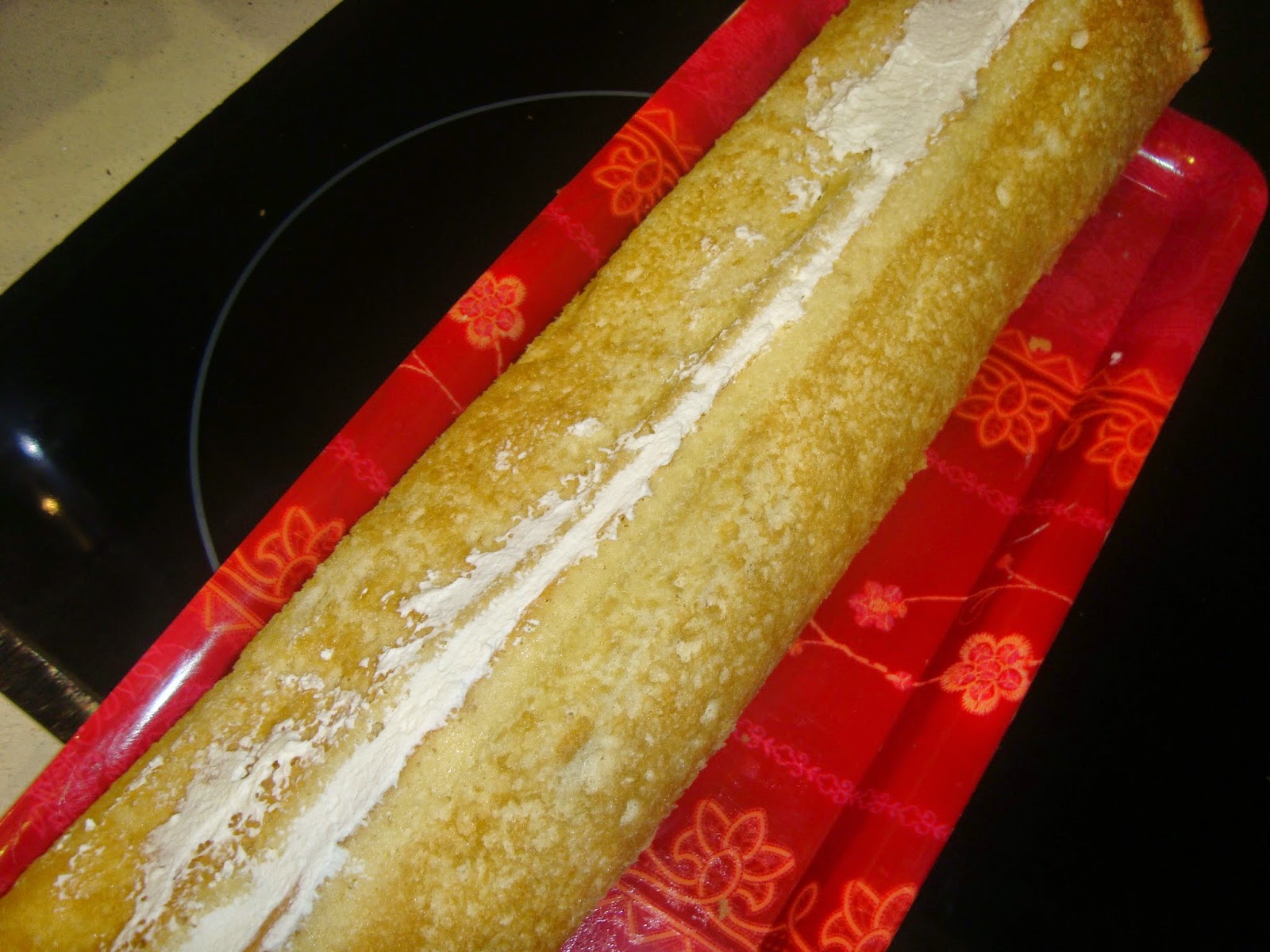 El pas final, és el secret del postre. Un cop fred, desenrotlleu la massa, la traieu del paper, la col.loqueu damunt una safata, i la farciu amb la nata que haureu muntat, començant pel plec de més endins.