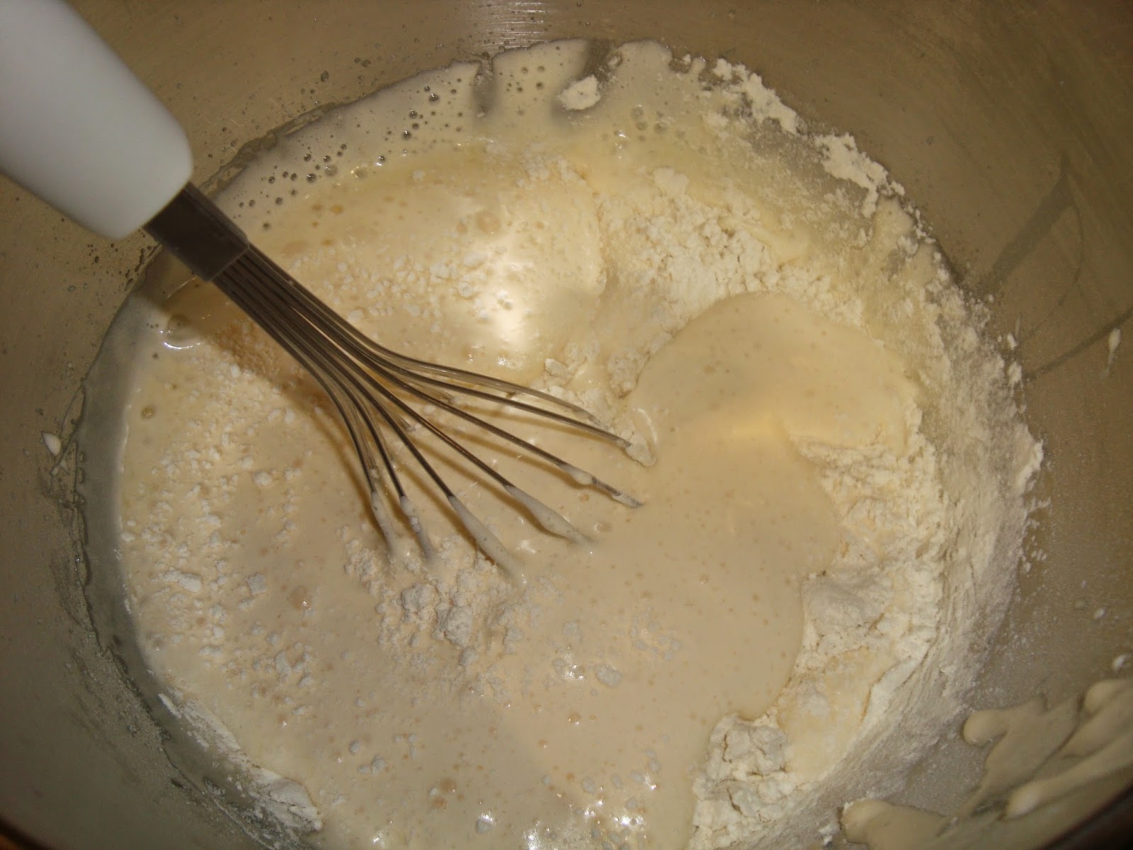 Es tracta de batre, amb la KA, el sucre i els ous fins que, com a mínim, doblin el seu volum. Llavors afegiu la farina, tot tamizant-la, i incorporant-la a la barreja remenant, suament, amb una espàtula o batedor manual, de dalt a baix.
