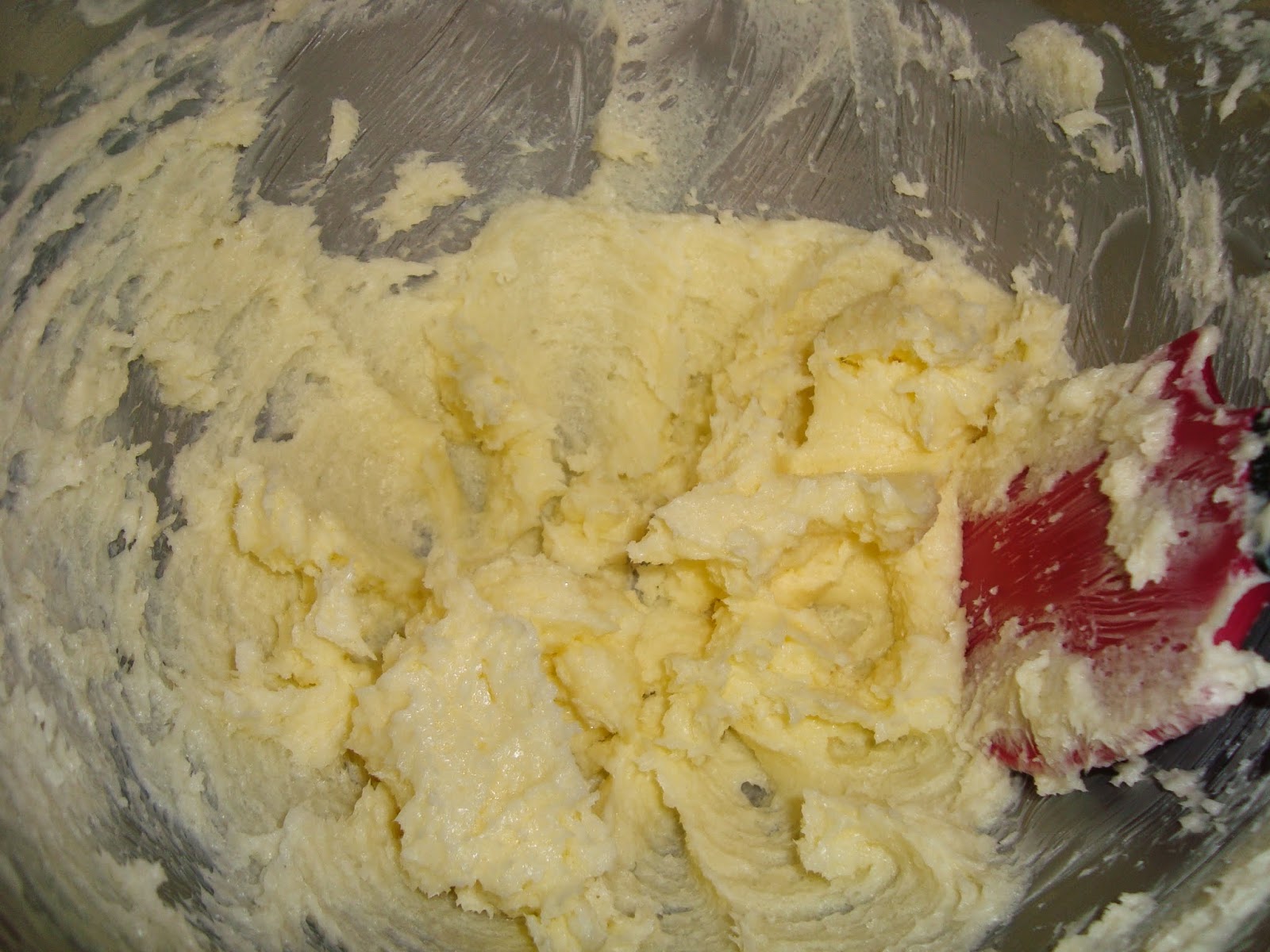 Llavors anem a preparar la crema de mantega per simular l'herba. Batem el sucre llustre i la mantega, una bona estona, fins obtenir una crema suau i blanquinosa.
