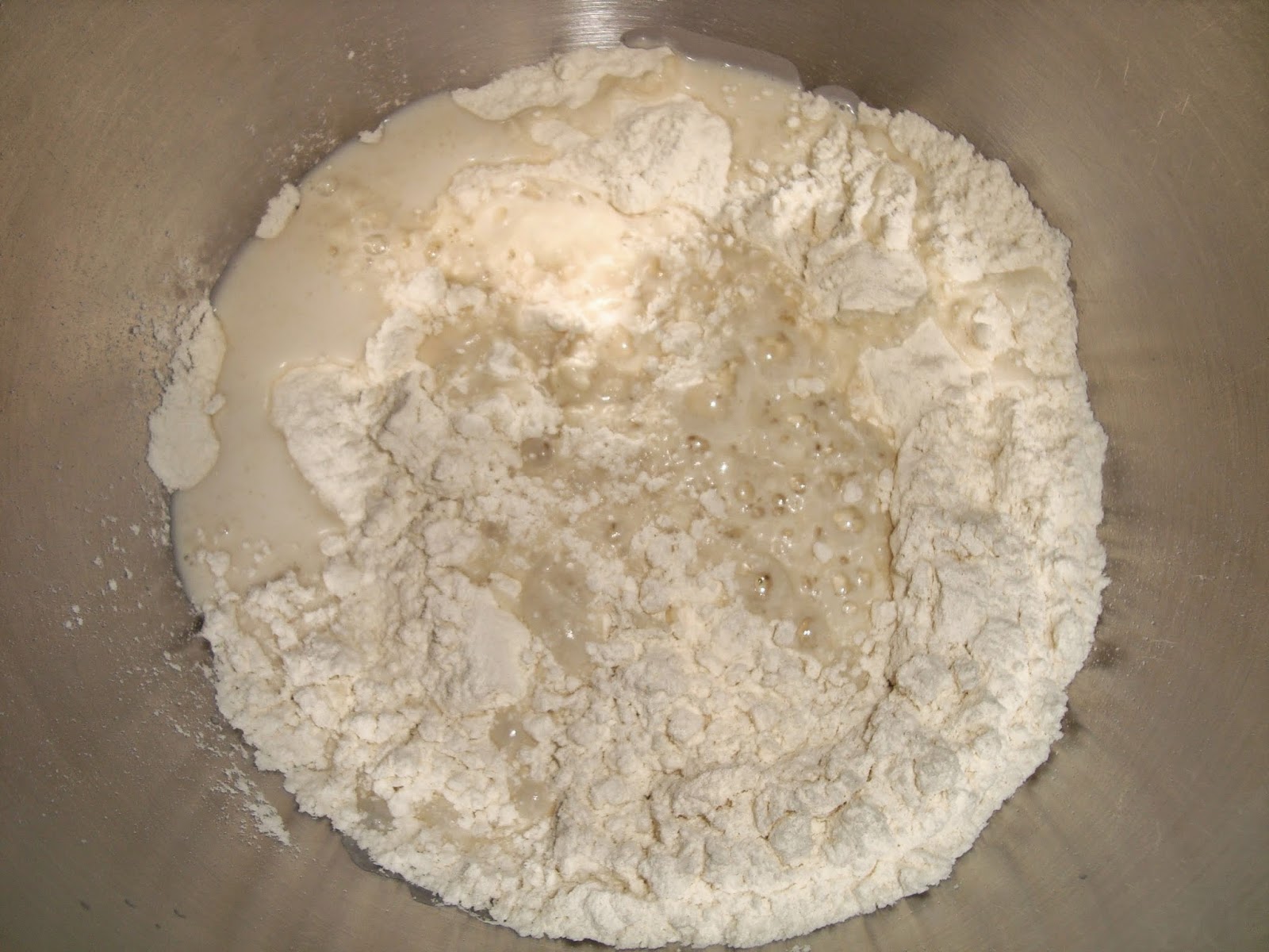 Barregem tots els ingredients sòlids en un bol (farina, sucre, llevat i sal).