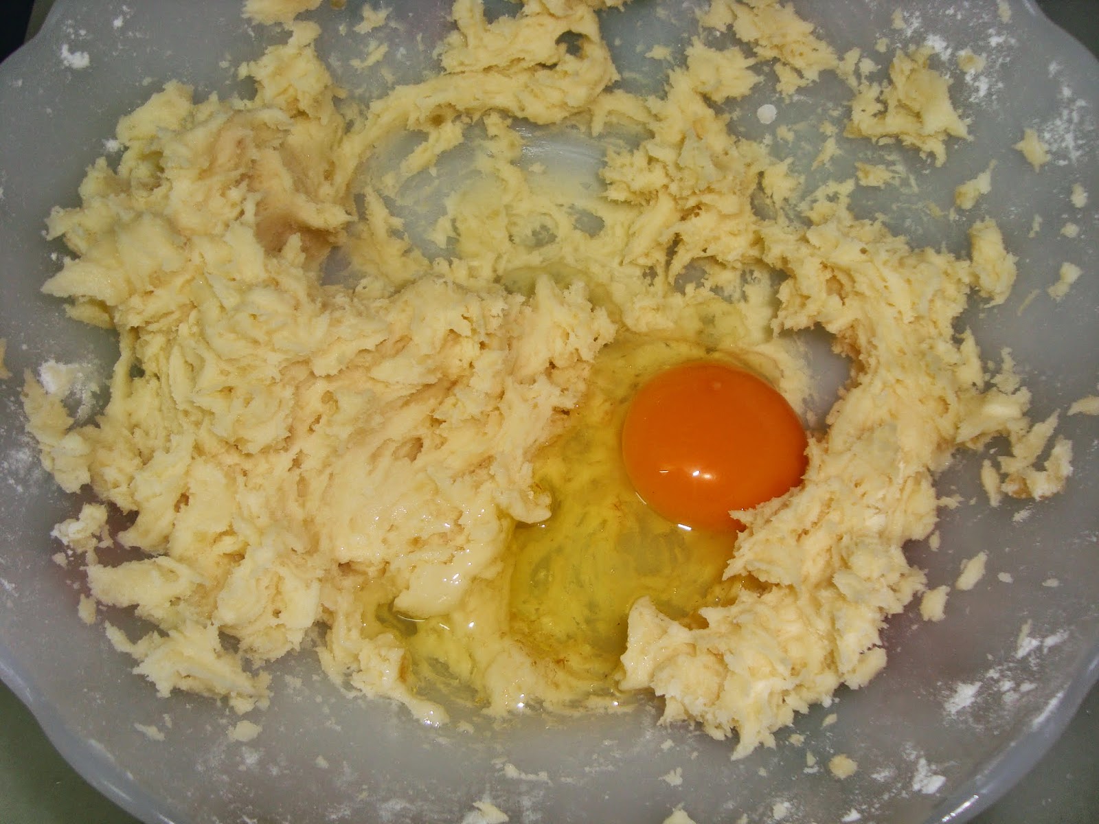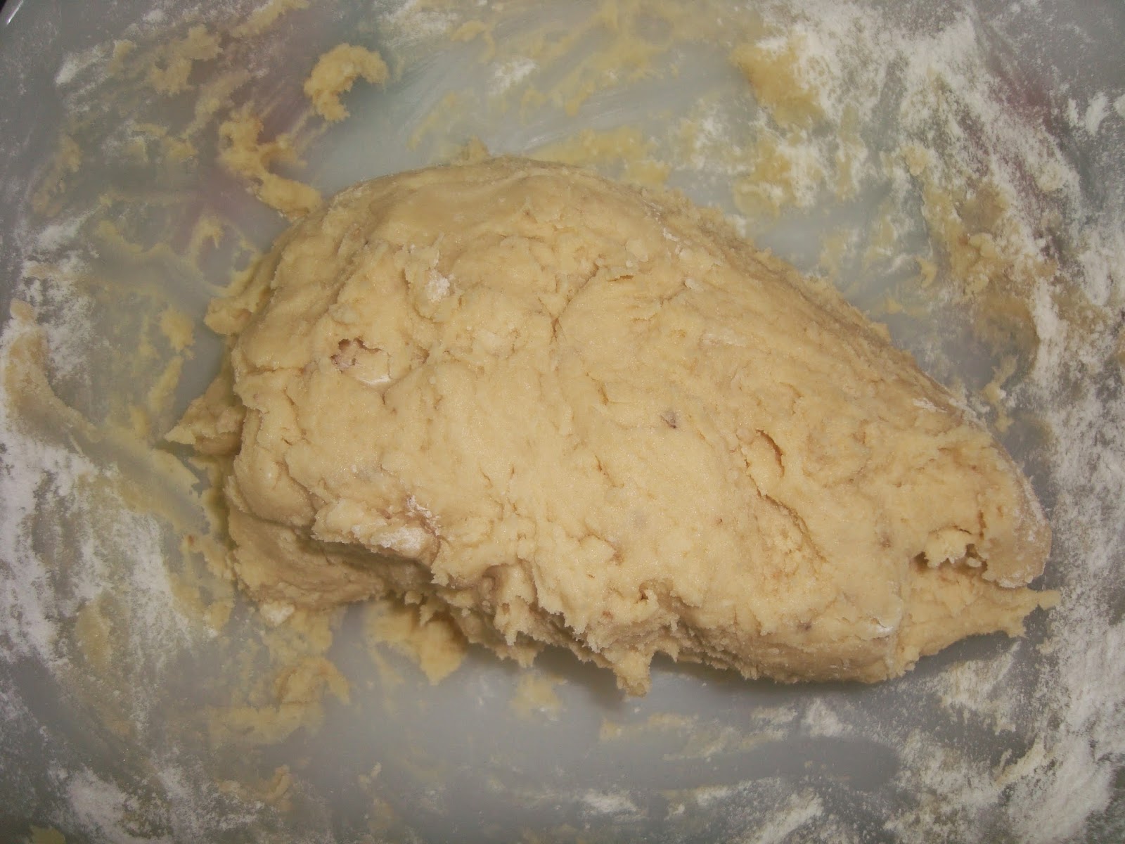 En un bol col.loquem la farina, el sucre, el llevat, els rovells, la mantega, la pela de llimona ratllada i el suc de llimona i comencem a amassar.